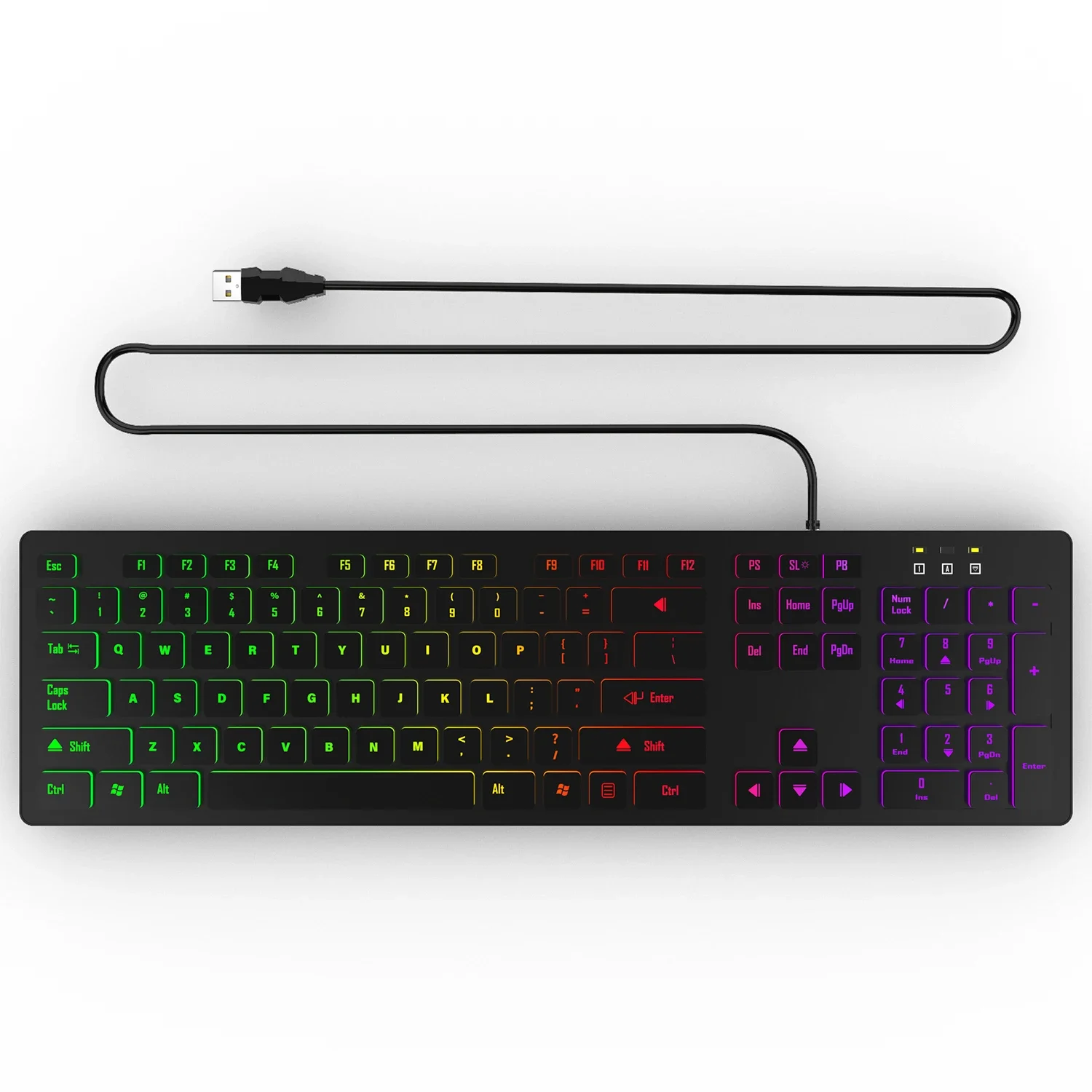 Computer Gaming Keyboard Light Backlit RGB Mute Wired Keyboard USB Office Home Russian French Spanish German Arabic English