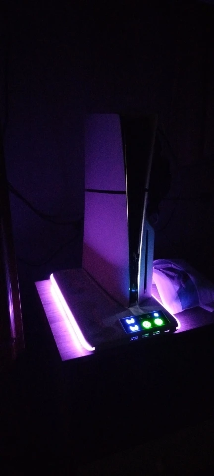This multifunctional cooling stand is designed to keep your PS5, PS5 Slim, or PS5 Pro organized, cool, and ready for action. It combines efficient cooling, controller charging, and accessory storage in one compact, space-saving solution.